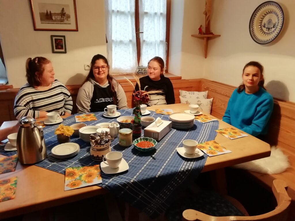 Bettina Hasiweder, eine ehemalige Assistentin unserer Schule, lud uns (die 5. EF- und die 6. EF-Klasse) zu einem gemeinsamen Frühstück und Bastelvormittag ein.